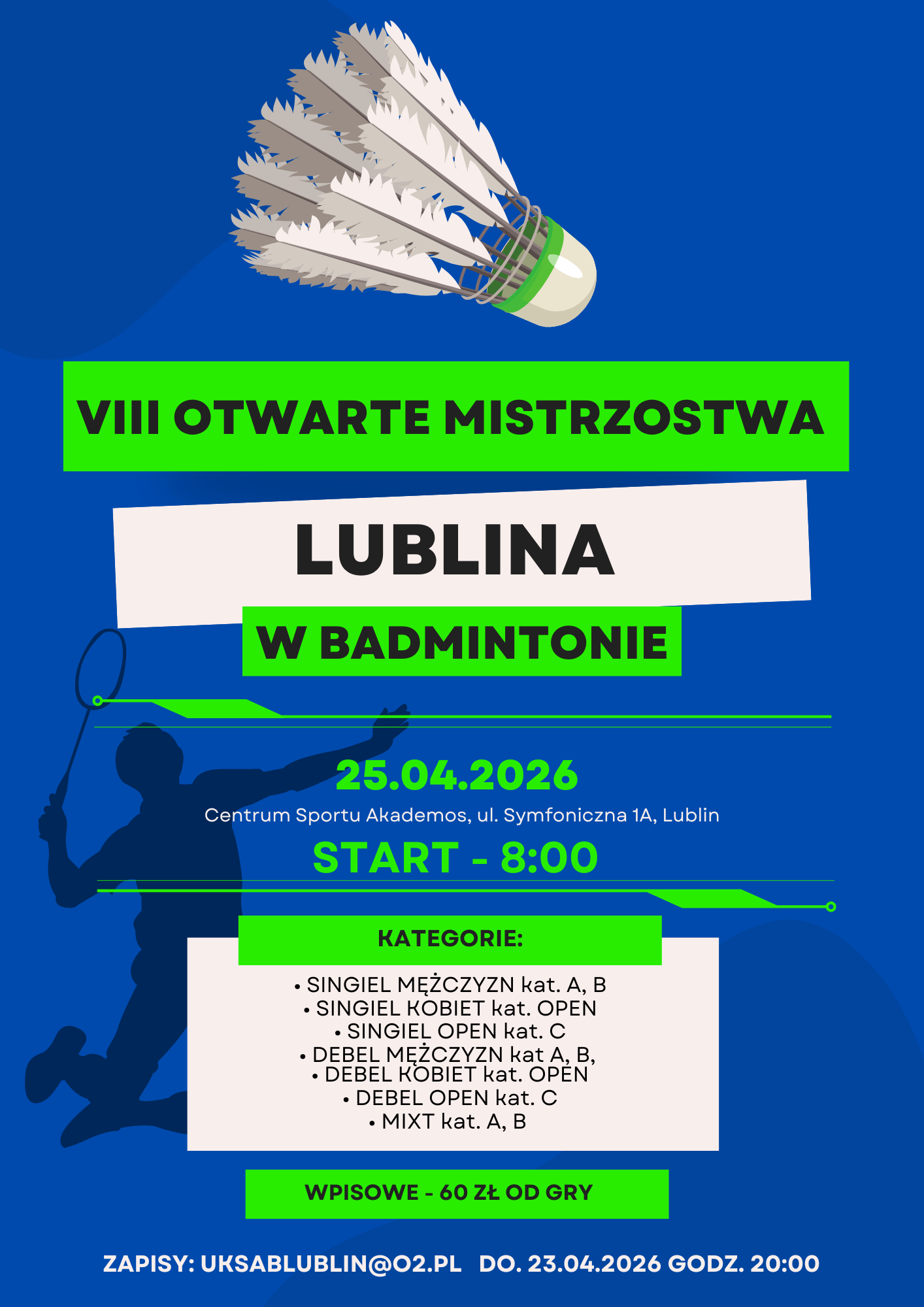 Jesteśmy przeszczęśliwi, że badminton w Lublinie z roku na rok cieszy się coraz większym zainteresowaniem ! Dlatego jeszcze przed zakończeniem […]